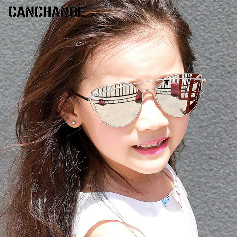 CANCHANGE Cat Eye Sunglasses Children Sun Glasses Alloy Frame Kids Mirror Eyewear